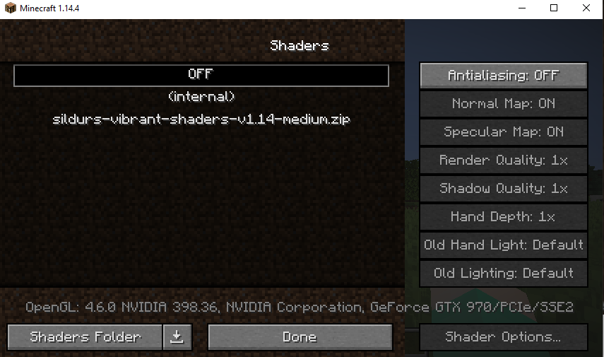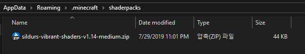 저는 개인적으로 마음에 들던 Sildur's Vibrant Shaders 팩을 설치해볼까 합니다.
