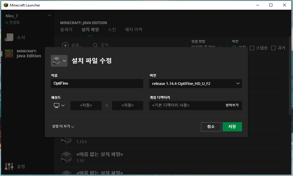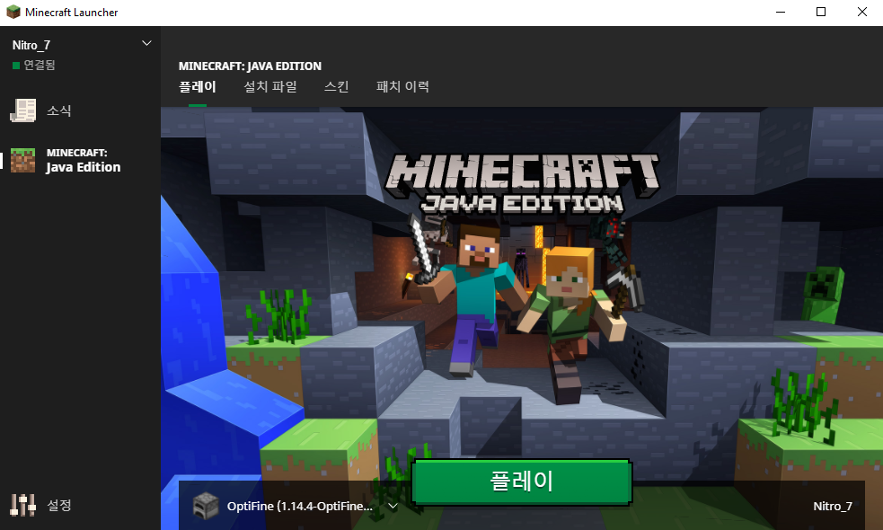 그리고 다시 마인크래프트 런처를 실행시켜주면...