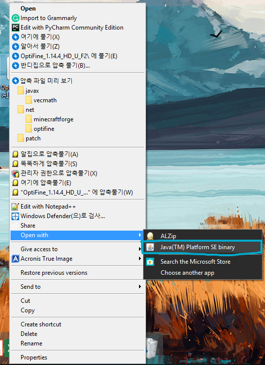 다음으로 할 것은 다운로드한 옵티파인을 설치하는 것입니다.