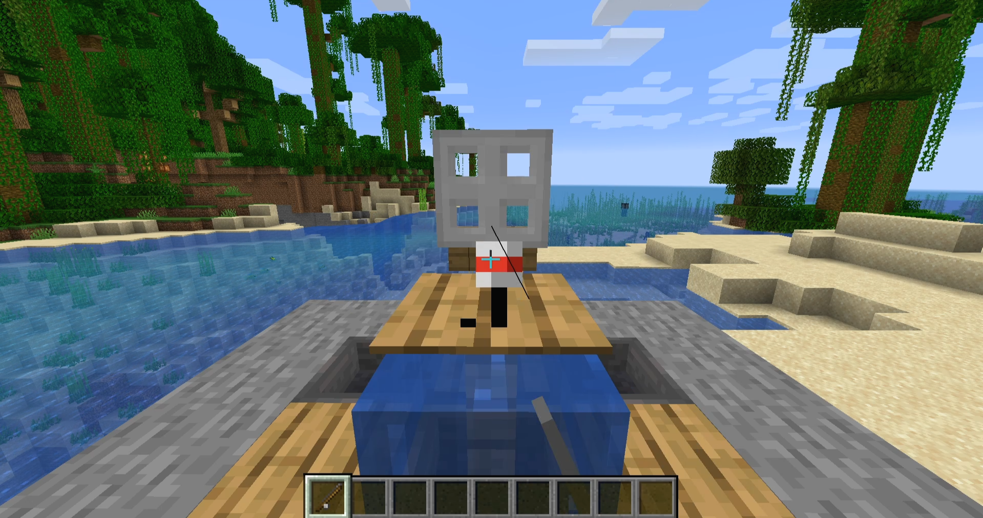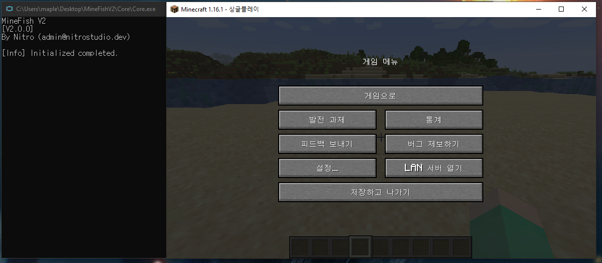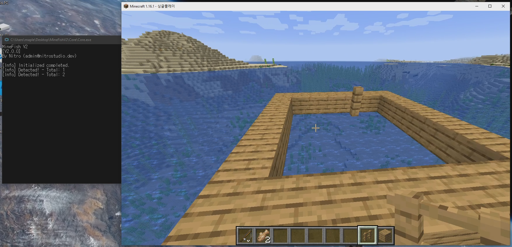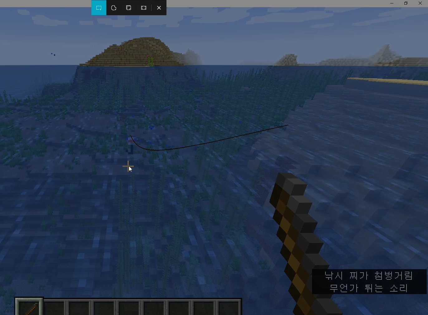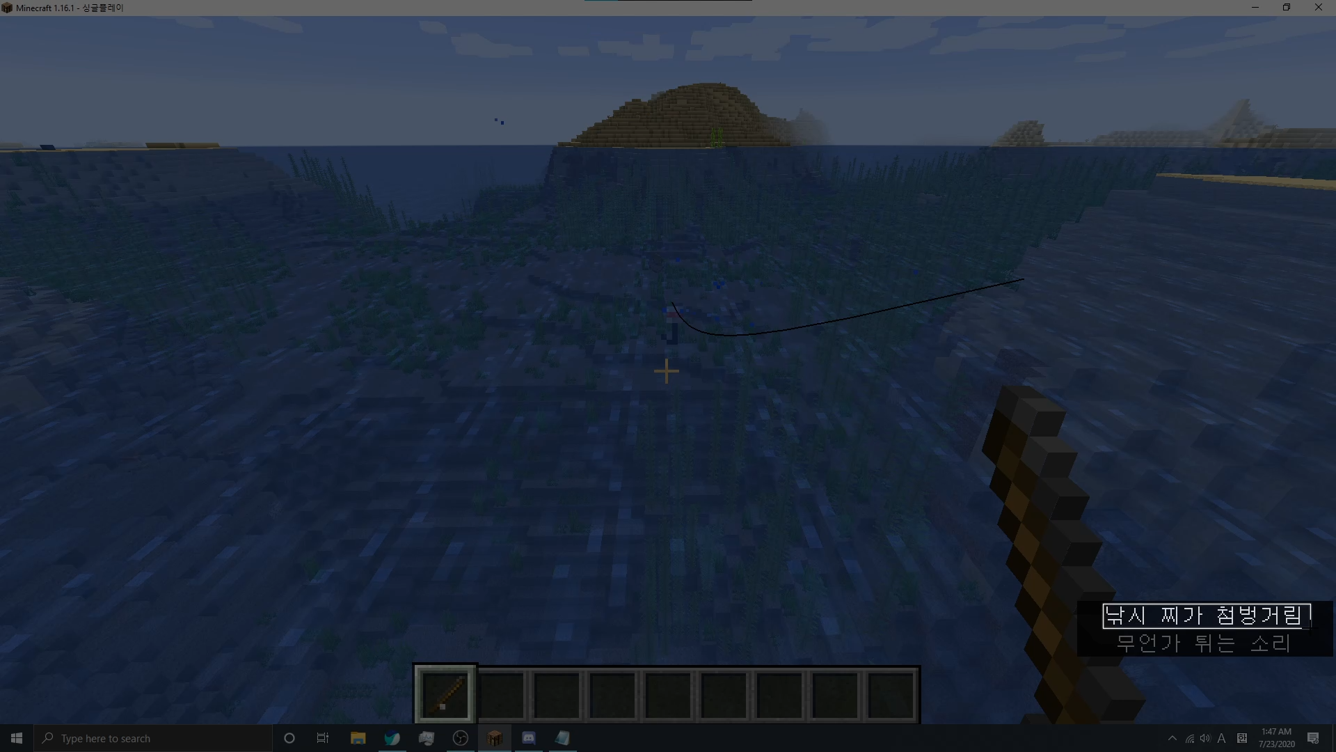 해당 문구가 뜨면 준비가 완료된 것이니, 마인크래프트로 돌아가 낚시 찌를 던져봅시다.
