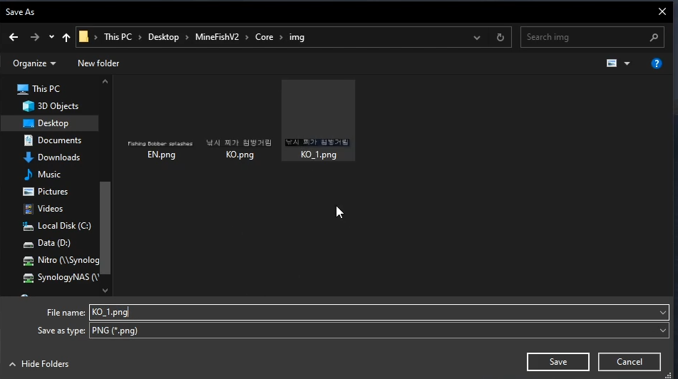 이름은 아무거나 해도 상관없지만, 오류 방지를 위하여 띄어쓰기 없는 영문을 사용할 것을 권장합니다. 이를 Core 안의 img 파일에 저장해 주면 끝입니다.