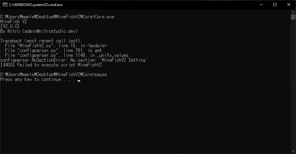 configparser.NoSectionError: No section: 'MineFishV2 Setting'