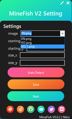 MineFishV2라고 되어있는데, V1은 한 칸 블럭짜리용도로 만든 프로그램이라 더 이상 의미가 없어졌기에 따로 동영상을 올리지는 않겠습니다.