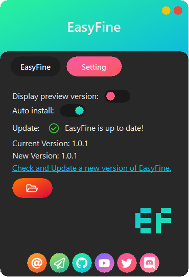 - EasyFine will automatically self-update when there is new versions are available.