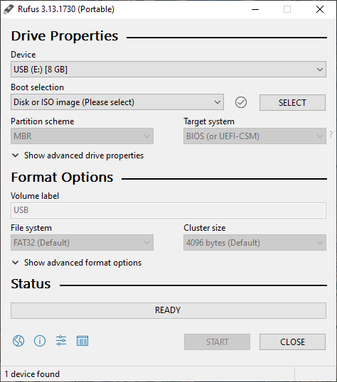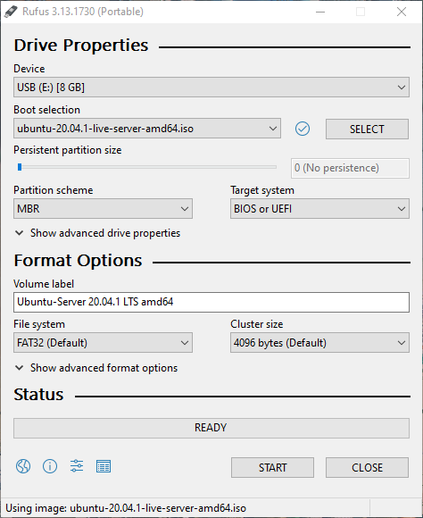 그 후, 사용하실 USB를 선택하시고 (귀찮으시더라도 다시 한번 확인하세요!), iso 파일도 선택해주신 후, START를 눌러줍니다.