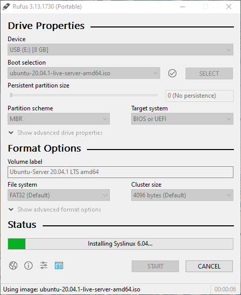 iso 파일 플래싱 도중 USB는 자동으로 포맷됩니다.