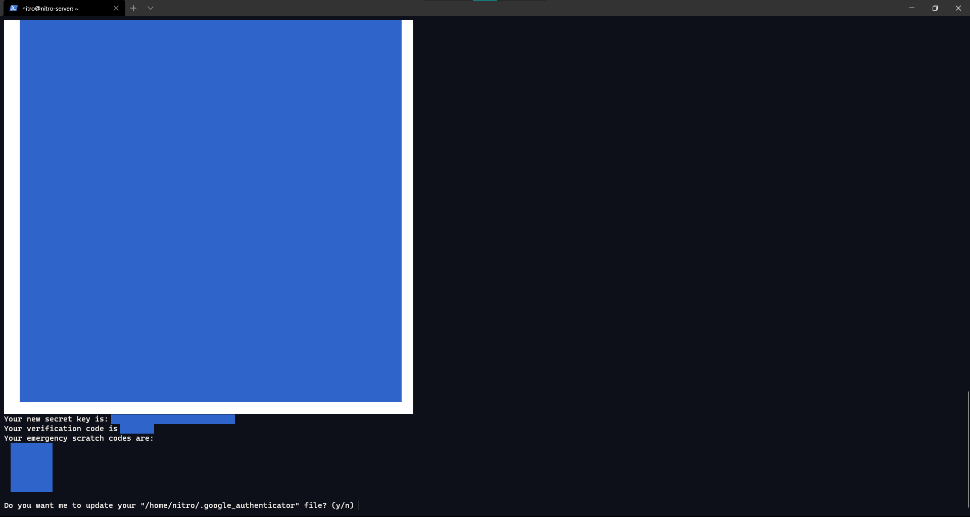 Do you want me to update your "/.google_authenticator" file? (y/n)