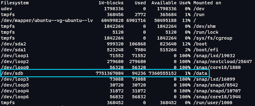"/dev/sdb"에 연결되어있는 것을 확인할 수 있습니다.