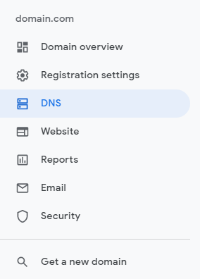 Google Domain을 구입하고 난 후, 왼쪽 탭에서 DNS를 찾아 들어갑니다.